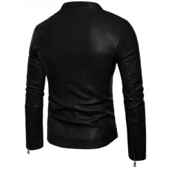 This ultra-stylish black leather jacket with a small collar is guaranteed to make every head turn when you walk in the room wearing it. This is the perfect fit for your graceful wardrobe and will stay with you for a long time. Three pockets are provided, two at the waist and one on the chest to solve your space-related issues. The comfortable and hip small collar makes it a suitable outfit for all occasions i.e. date night, a party, friends get together or a business meeting. YKK zipper on the front closure, cuffs and waist side pockets in a contrasting copper color enhance the beauty of this jacket.