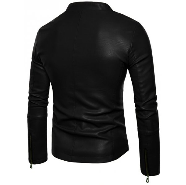 This ultra-stylish black leather jacket with a small collar is guaranteed to make every head turn when you walk in the room wearing it. This is the perfect fit for your graceful wardrobe and will stay with you for a long time. Three pockets are provided, two at the waist and one on the chest to solve your space-related issues. The comfortable and hip small collar makes it a suitable outfit for all occasions i.e. date night, a party, friends get together or a business meeting. YKK zipper on the front closure, cuffs and waist side pockets in a contrasting copper color enhance the beauty of this jacket.