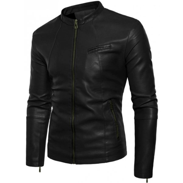This ultra-stylish black leather jacket with a small collar is guaranteed to make every head turn when you walk in the room wearing it. This is the perfect fit for your graceful wardrobe and will stay with you for a long time. Three pockets are provided, two at the waist and one on the chest to solve your space-related issues. The comfortable and hip small collar makes it a suitable outfit for all occasions i.e. date night, a party, friends get together or a business meeting. YKK zipper on the front closure, cuffs and waist side pockets in a contrasting copper color enhance the beauty of this jacket.