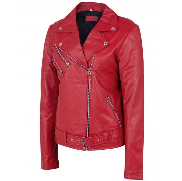Maroon Biker Jacket for Women SI-507