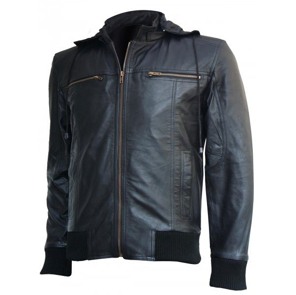 Luxurious fashion crushed Men Bomber Black Leather Jacket With Hood in a striking designer style. Latest and updated styling and extra textured crushed feel for that edgy chic look. Men’s Hood Jacket is a men’s top quality leather jacket, made from our finest cowhide Leather. It is Super Soft and classically tailored. It has all year round versatility, unique detailing, a classic hood with a modern twist.