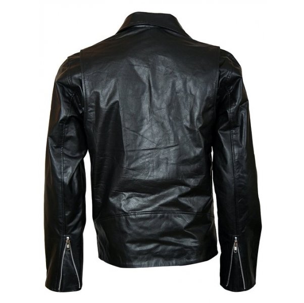 Men Rider Black Leather Jacket, Made with 100% Real Cowhide Black Leather. This biker jacket has slightly inclined front silver color zipper of authentic YKK brand with wide collar which gives the jacket a distinguished design. It also has two inclined pockets with zippers to keep your hands warm with high class satin lining. You can buy this jacket in any size at the most reasonable cost here.