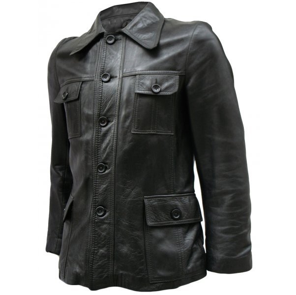 An outstanding Soft Men’s Black Winter-wear Leather Jacket, the flapped pocket design crafted with real cowhide leather. The shirt style collar and the four front pockets are ideal to give you a formal look. Easy wear and extremely comfortable with internal satin lining, this black leather jacket has been created with extreme care to give you a great semi formal look in pure cowhide leather which is now available at a discounted price.