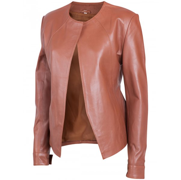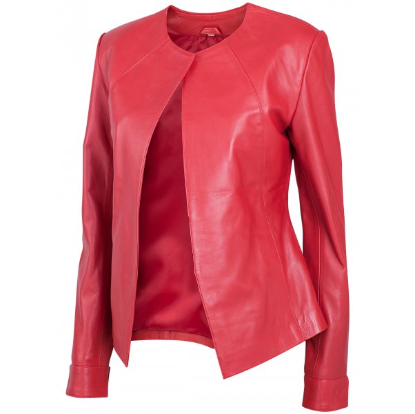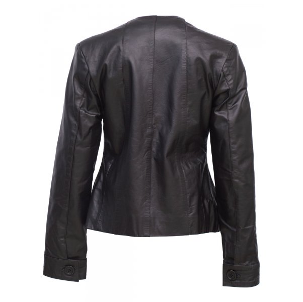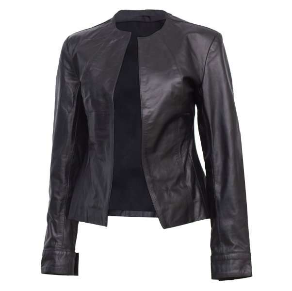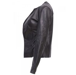 Presenting to you “Timeless Black Collarless Leather Jacket for Women “ a smart and elegant piece. Made with 100 % real sheep leather, the quality is so fine that you can feel the smoothness. Its stitching is perfect and looks even more better with the Black shade, though you can go for other shades available.It is Internally fully lined which gives it a plus boost.